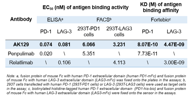 AK129抗原结合活性优越