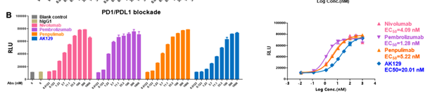 AK129可高效阻滞LAG-3/MCHII和PD-1/PD-L1信号通路的生物活性